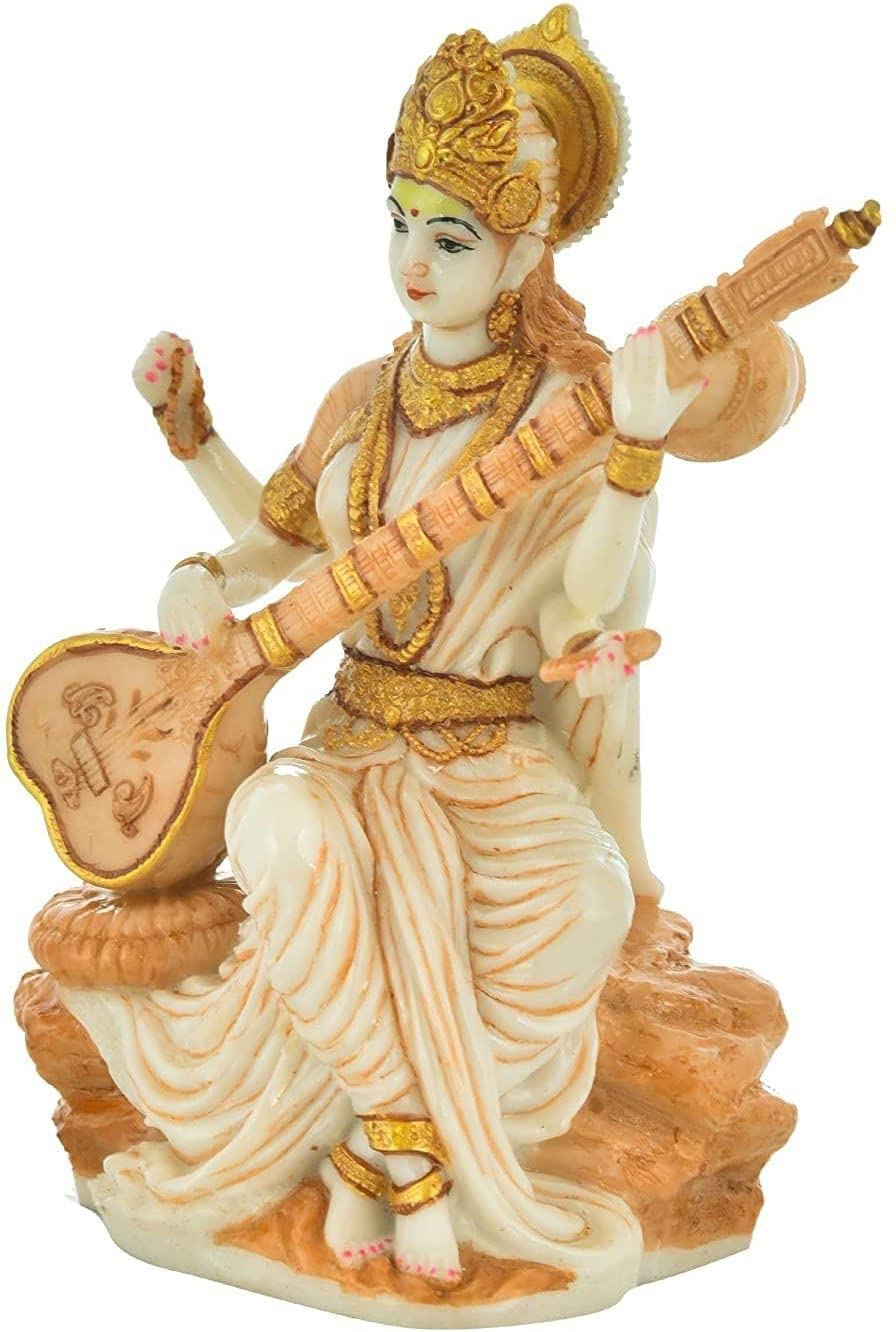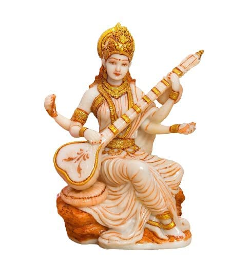 Beautiful Maa Saraswati Murti Sculpture Hindu Goddess Saraswati Ji Murti God Idol for Knowledge Meena Vadak Statue, Teachers Day Gift (Marble), Multicolor, Idol