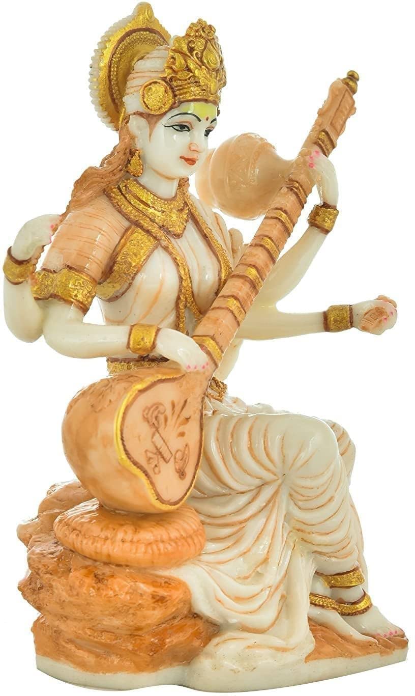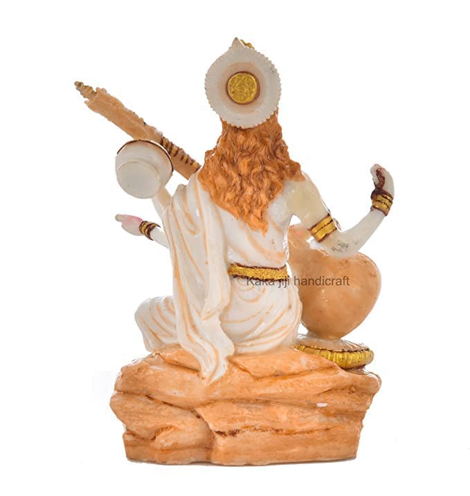 Beautiful Marble Dust Saraswati ji maa with attractable design for your office and Teachers Gifting , she has retained her significance as a goddess from the vedic age up to the present day. In shanti parva of the hindu epic mahabharata, saraswati is called the mother of the vedas, and later as the celestial creative symphony who appeared when brahma created the universe. In book 2 of taittiriya brahmana, she is called the mother of eloquent speech and melodious music. Saraswati is the active energy and power of brahma. She is also mentioned in many minor sanskrit publications such as sarada tilaka of 8th century ad as follows.This Saraswati maa statue is made of marble dust ( resin powder ) and it is handmade and hand designed by the expertisans.